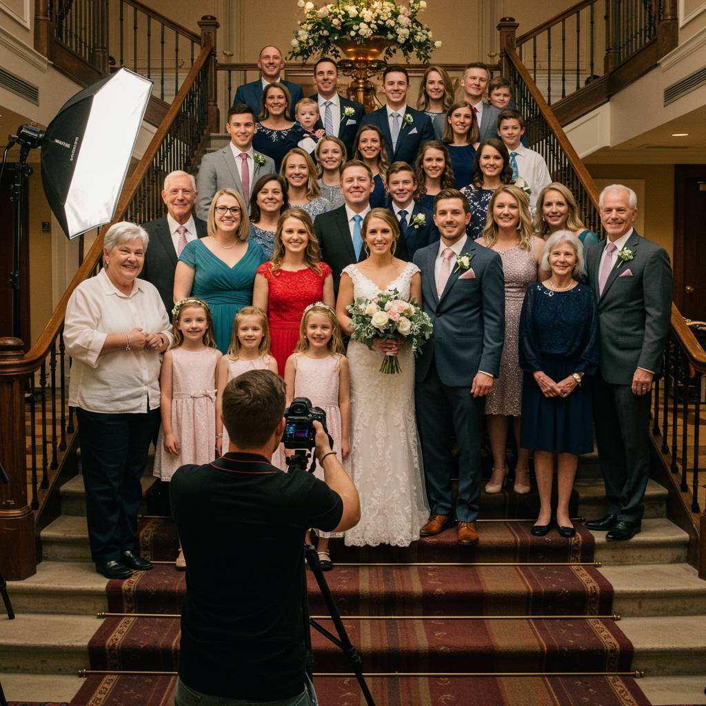 さらに、「タイミング」も重要です。披露宴の序盤、皆がまだ疲れていない時間帯を選びましょう。料理が始まる前、または乾杯直後が理想的です。親族写真の時間を事前にプログラムに組み込み、司会者からアナウンスしてもらうと、スムーズに集合できます。